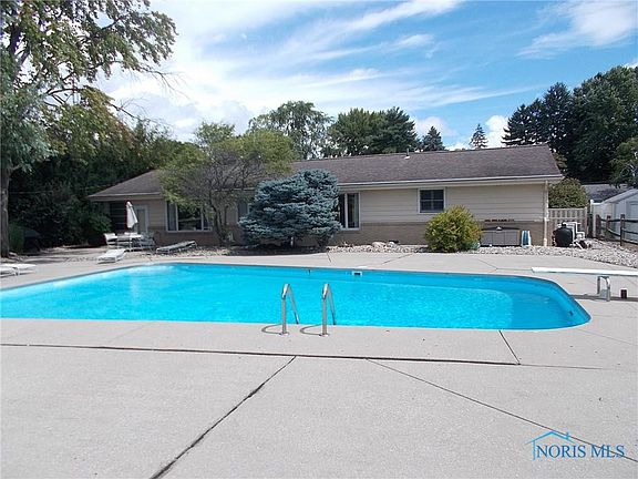 Nice ranch on Heatherdowns Country Club golf course with wonderful concrete inground swimming pool(no liner ever needed !), 4 bedrooms(smallest used as an office),master bedroom w/ bath & walk-in closet, 2.5 baths total, oversized 2.5 attached garage, good basement/finished, main floor has Bar room w/ mini.fridge/sink, of course underground sprinklers, modern gutter guards, a good roof & modern 90 plus furnace w/ central air, large concrete back patio for entertaining and of course great views of heated inground pool and golf course. Possession upon closing.