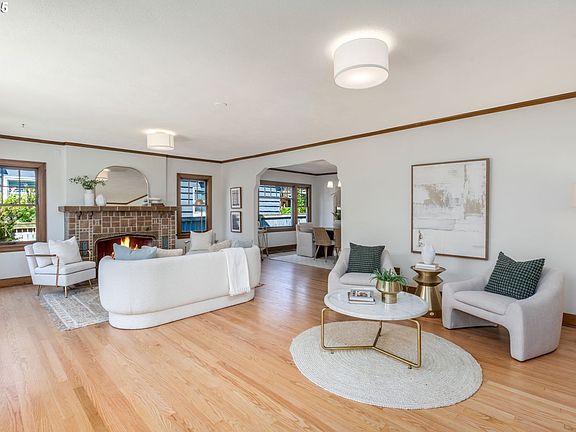 Set on a tree-lined street along the iconic Ladd’s Addition and Colonial Heights, this spacious English renovated by Old Growth Homes blends timeless craftsmanship with a thoughtful reinvention. Inspired by the original fireplace tile, the home’s interior and exterior palette celebrates its historic roots while fresh upgrades bring it confidently into the present. Arched doorways, light-soaked rooms, and gleaming newly refinished floors make every corner feel warm and welcoming. The kitchen is where everyone will want to be with a 36” Verona range, entertaining island with quartz counters, and custom wood cabinetry with soft-close doors. Upstairs and downstairs each enjoy their own dedicated heating and cooling. Five bedrooms and four full baths, including a dreamy primary with heated floors and a skylit shower, offer space to stretch out. Downstairs, the finished lower level (complete with a wet bar and full-sized fridge) sets the stage for movie nights, guest stays, or extended family quarters. Outdoors, you’ll find a private courtyard retreat complete with a decomposed granite patio, new fencing, and a rebuilt chimney. Every system has been touched, from plumbing and electrical to roof and windows, all permitted and professionally handled. Park in the EV-ready, upgraded garage, then stroll or bike to New Seasons, Division, or Hawthorne. Rooted in history, updated for real life in the city we love. [Home Energy Score = 3. HES Report at https://rpt.greenbuildingregistry.com/hes/OR10238903]