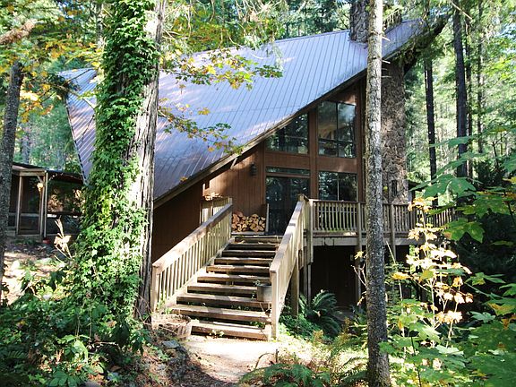 26+ acres of trees, wildlife, and solitude are but a brief description of this property. This chalet style home has unique angles, vaulted ceilings and a forest view out every window. The majestic stone fireplace with woodstove inserts in the family room and primary bedroom adds warmth and romance to the home. Large guest quarters sit next to the home includes all the amenities, woodstove, kitchenette, bathroom and great views. A covered hot tub and BBQ workstation are situated neatly off the rear of the home. A fully functional 84'x 24' shop includes ample power source, restroom and workspace. Covered woodshed, water holding tanks, 2 wells, 40 kw backup generator, covered carports and much, much more. This property has loads of potential and privacy for anyone searching for their perfect piece of Oregon. Come check it out! NOT A DRIVEBY.