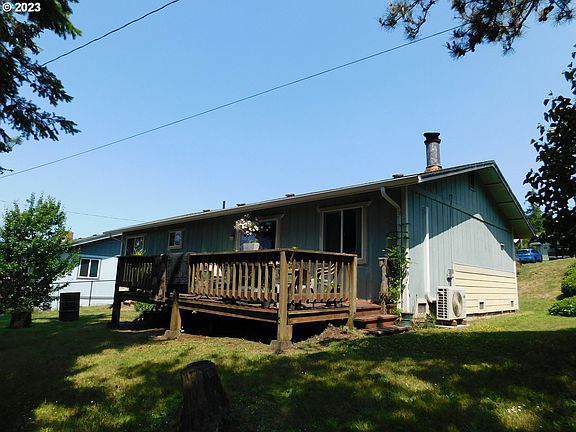 Great views in a nice location in Myrtle Point with a one level ranch style home on a large lot approx. 76 X 100. Built by the Myrtle Point High School "Bobcat Construction Class" & these are the original owners that purchased it back in 1976. Home built in 1975(according to Coos County records) with approximately 1248 sq.ft, 3 Bedrooms & 2 full bathrooms, Nice sized kitchen with oodles of cabinets, Range & Refrigerator included, built-in dishwasher, Large breakfast bar area, Spacious living room with corner rock fireplace, Ductless heat pump for heat & cool, also has electric baseboards in the bedrooms, laundry room, Double attached garage with garage door opener & a deck on the front and back of home. Call for an appointment.