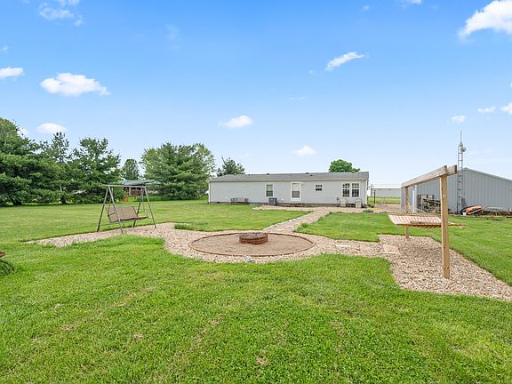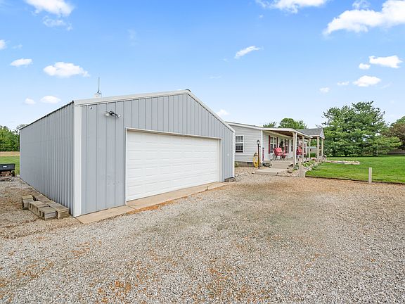 Peaceful country setting in southeastern Bartholomew County. Explore this updated manufactured home located on a spacious 1.35-acre lot, complete with a two-car detached garage. Enjoy the covered front porch overlooking a Koi pond and listen to the tranquil sounds of nature. The home has received numerous updates, including fresh paint, chair rails, and updated light fixtures in the kitchen. The kitchen island and cabinet trim has custom wood accents. A new microwave, washer, and dryer add convenience to daily life. Two bedrooms have been refreshed with new carpet, and one includes new can lights. The primary bedroom suite features added shelving in the oversized walk-in closet, along with a garden tub, full shower stall and double vanity. The detached 2-car garage has electricity with a newly installed heater and plenty of room for hobby space and additional storage. Outside, the property boasts new landscaping with a fire pit, hammock, and an above-ground swimming pool, creating a perfect environment for relaxation and entertainment. This property is an ideal choice for those looking for a comfortable and updated home with plenty of outdoor space to enjoy.