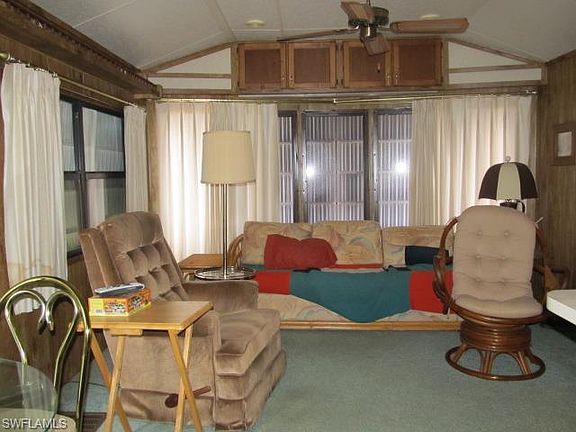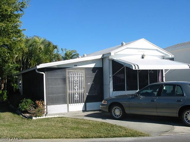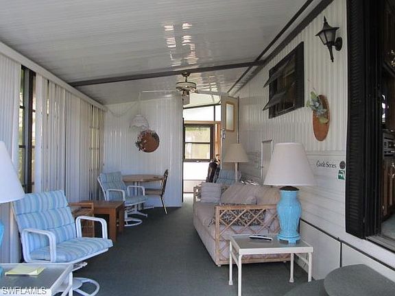 Very desirable park model on a corner lot in Palmetto Palms. It features 1 bedroom, and one bath, with replaced carpeting, roof over, and a full sized stove. The washer and dryer are inside the utility room. This home has a very large lanai, a nice sized utility room, and a large tree in the yard. Palmetto Palms is located just down the road from the Sanibel causeway, and within biking distance from Bunche Beach, with it's world class kayak/ SUP launch area and wonderful sunset beach. This one will go quickly! Call now for an appointment!