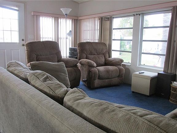 Great two bedroom, one bath home in Palmetto Palms RV resort. This home has a nice open living area and the popular u shaped kitchen. The home will come completely furnished for you to move right in. The second bedroom has a murphy bed system, and also contains the washer and dryer. With a new roof and air, the home is ready to be your home in the winter sunshine. You own your land here, and are between Ft Myers Beach and Sanibel. This is a very active, fun filled adult park with pools, tennis, volleyball, and lots more. The community is entirely fenced and gated. Close to Sanibel, Fort Myers Beach, Bunche Beach, shopping and hospitals with lots of bike trails to get to those destinations.