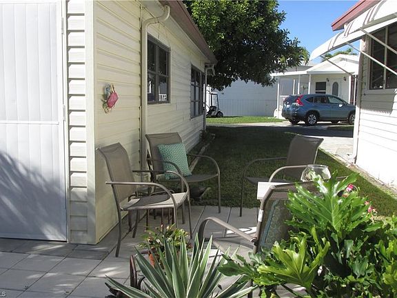 Updated one bedroom, one bath home with guest room in Palmetto Palms RV Resort. This cutie has had a very recent air update, has tile and laminate flooring, and has a rare gas stove! It comes partially furnished, and has been well maintained by the owner. There is a second bedroom tucked away in the rear, and the bathroom is spacious for a home of this size. Plenty of storage too! You own your land here, and are between Ft Myers Beach and Sanibel. This is a very active, fun filled adult park with pools, tennis, volleyball, and lots more. The community is entirely fenced and gated. Close to Sanibel, Fort Myers Beach, Bunche Beach, shopping and hospitals with lots of bike trails to get to those destinations.