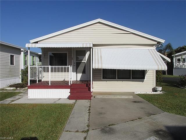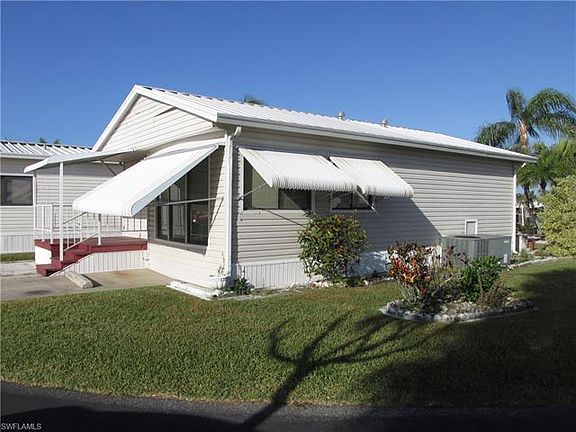 Great corner lot and a bath and a half. This is a well maintained one bedroom home in Palmetto Palms. The home comes fully furnished, with tons of storage room. The lanai/ living room has glass windows, and behind that is a storage room/ office area with a half bath. It features a kitchen that has full sized appliances, and plenty of counter space. You own your land here, and are between Ft Myers Beach and Sanibel. This is a very active, fun filled adult park with pools, tennis, volleyball, and lots more. The community is entirely fenced and gated. Close to Sanibel, Fort Myers Beach, Bunche Beach, shopping and hospitals with lots of bike trails to get to those destinations.