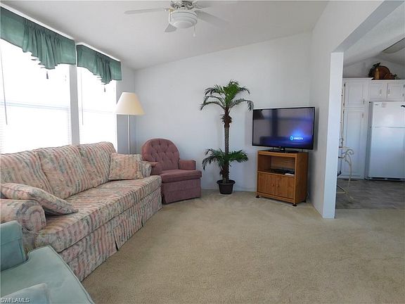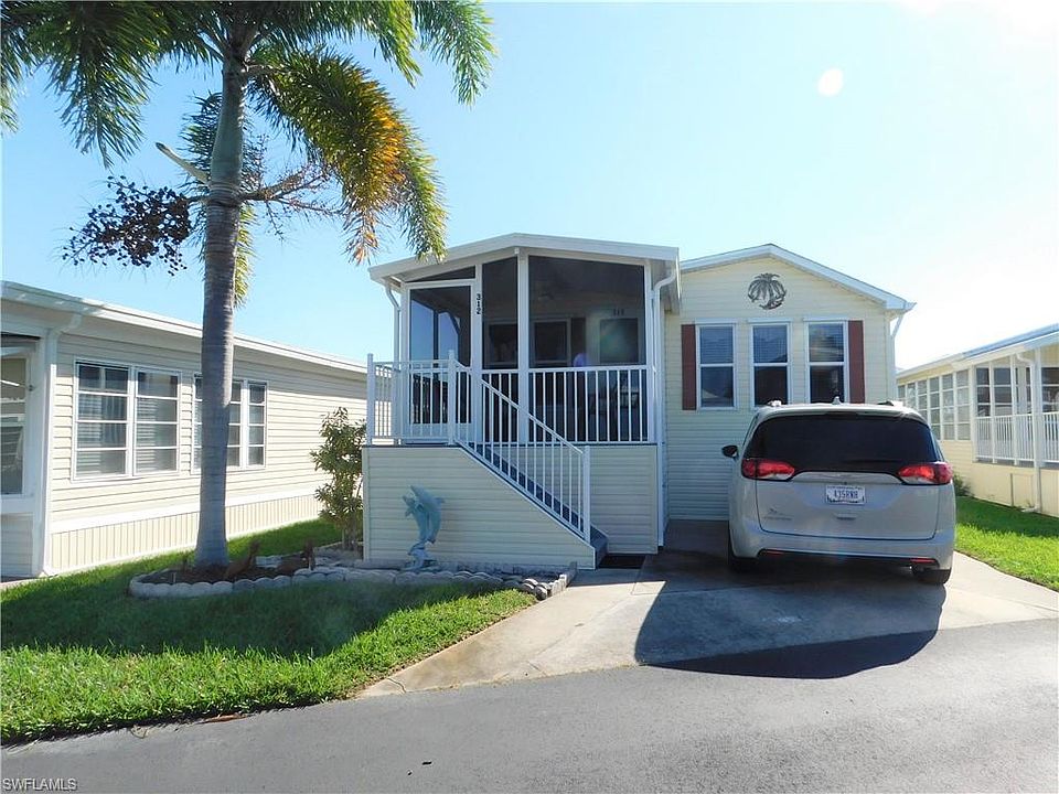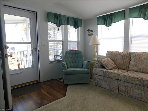 Immaculate 2 bedroom, 2 bath home in Palmetto Palms RV resort. This high rise unit has a screened in front porch, and comes furnished with everything you will need to enjoy your winter here in the sunshine. The open floor plan features a large living room, and plenty of counter space. The master bedroom and bath are quite spacious. The second bedroom has a trundle bed so that you have floor space, but sleeping room as needed. The underneath area of the home is all concrete, and very clean. Palmetto Palms is an active 55 and over community, with numerous activities throughout every day. Bike to the beaches too!