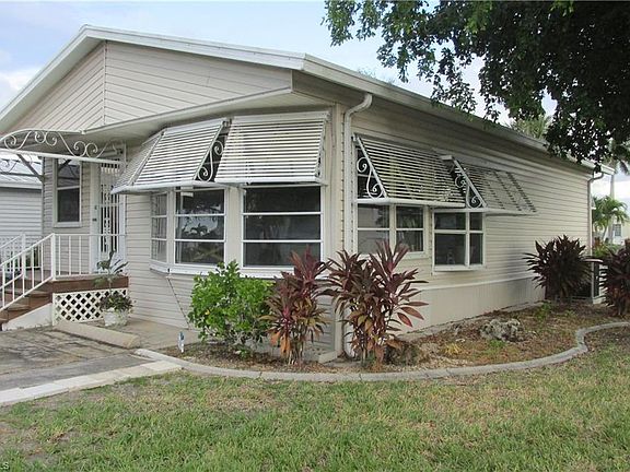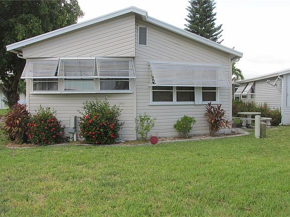 Wonderful remodel of a corner unit! Unique floor plan is all on one level, and a mid rise. As you enter, there is a custom mural that greets you on the opposite wall to the entrance. Behind the mural is a large master suite with en suite master bathroom. The utility area, with washer, dryer and large work and storage room is in the rear of that side. If you go right from the entrance, you will find a living area with a bay window. The dining room also has a bay area that looks over the side yard. The kitchen has lots of cupboards and counter space. The second bathroom and bedroom is to the rear of the kitchen. Please come and see this unique opportunity to have a custom designed two bedroom, two bath corner unit! A stone's through from the main amenities. You own your land here, and are between Ft Myers Beach and Sanibel. This is a very active, fun filled adult park with pools, tennis, volleyball, and lots more. The community is entirely fenced and gated. Close to Sanibel, Fort Myers Beach, Bunche Beach, shopping and hospitals with lots of bike trails to get to those destinations.