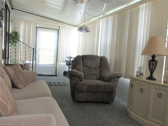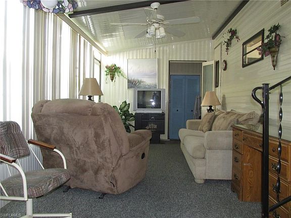 One bedroom, one bath home available in Palmetto Palms RV Park. The home comes completely furnished, and ready for you to come and enjoy your winters in Florida. Also great rental potential for a small investment. The wide lanai has glass windows, and there is a washer and dryer in the storage portion of the lanai. The kitchen has a new refrigerator. There is a newer roof over the entire home. You own your land here, and are between Ft Myers Beach and Sanibel. This is a very active, fun filled adult park with pools, tennis, volleyball, and lots more. The community is entirely fenced and gated. Close to Sanibel, Fort Myers Beach, Bunche Beach, shopping and hospitals with lots of bike trails to get to those destinations.