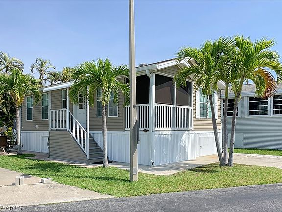 Enjoy the tropical lifestyle in this newly remodeled, 2-bed, 2-bath home. New AC, roof, hot water heater, insulation, appliances, LVP flooring throughout, lower cabinets, vanities, showers and more! This beautiful move-in ready home with a screened-in lanai. Located just a short stroll to the community pool, clubhouse, pickleball and tennis courts. Fantastic community where you Own Your Land in Palmetto Palms RV Condo, a 55+ community with an HOA. Community boat storage and is biking or walking distance to Bunche Beach. Very close to FMB and Sanibel with so much to explore. The community and recreational facilities are well on there way to being rebuilt after storm damage suffered from Hurricane Ian.