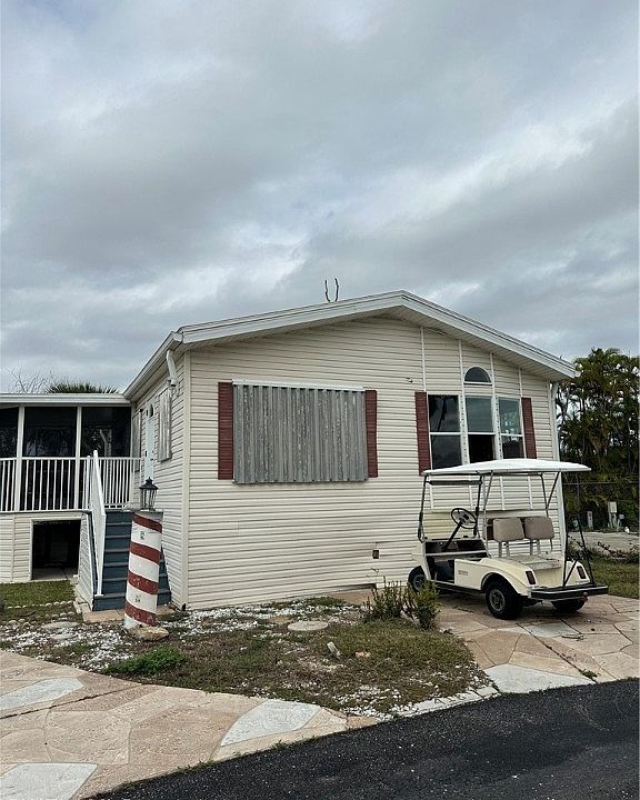 Palmetto Palms RV Resort Condominium Association, Inc. is a resident owned Senior (55+) housing community in Southwest Florida with desirable amenities, two pools, shuffle board, tennis, horseshoes, and Volleyball. This home was damaged by hurricane IAN and sits on an oversized lot with two driveways, it has been completely gutted to the studs and is ready to be renovated. Call today to schedule your showing. The golf cart is included with the sale, the seller does not know if it works or not. DO NOT ENTER THE HOME THERE IS NO SUBFLOOR!!