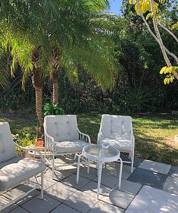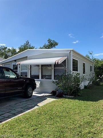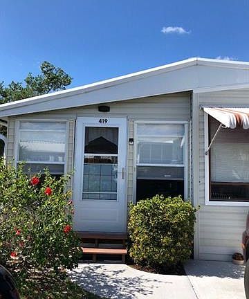 Located in Palmetto Palms, this is a one bedroom, one bath home on an exterior lot. The lot is pie shaped, with a large private area in the rear. The air was just replaced, as well as the duct work and the washer. The home has a large lanai as you enter, with a new front door and glass windows in the lanai. The main part of the home has laminate flooring and loads of storage. The rear bedroom is quite large, and has plenty of walk around room. Palmetto Palms is a very active 55 and over community with activities and athletic opportunities that go continuously. Very close to Bunche Beach, a great sunset beach. A bike path is right outside the development, and there is shopping galore within biking distance. The shed in the rear will need to be removed post closing.