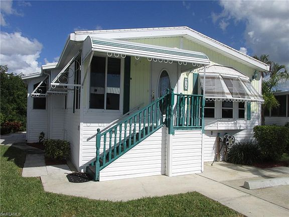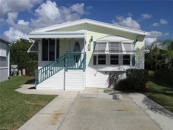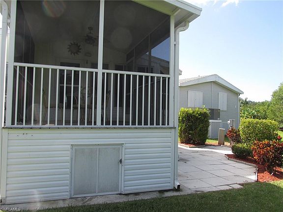 This one bedroom, one bath home is located on a perimeter, pie shaped lot in the pet section of Palmetto Palms. What more can you ask for? The rear of the home has a large screened porch for you. The area is scenic and private. When you enter the home there is a large utility room. The living area is extra wide, due to the shape of the lot, and has a view of the wooded area behind the home. There are plenty of cabinets and counter tops in the kitchen area, as well as a dining area that can hold a table and 6 chairs comfortably. You own your land here, and are between Ft Myers Beach and Sanibel. This is a very active, fun filled adult park with pools, tennis, volleyball, and lots more. The community is entirely fenced and gated. Close to Sanibel, Fort Myers Beach, Bunche Beach, shopping and hospitals with lots of bike trails to get to those destinations.