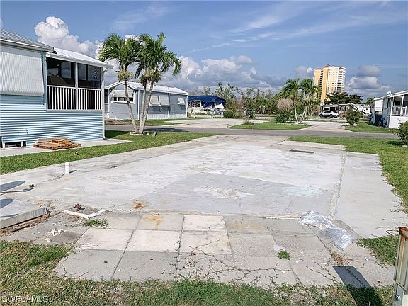Enjoy the beautiful sunrises and morning sunshine on this east facing lot! This lot has a 27' wide concrete pad for entertainment and parking. Great location! Located in phase 5 with a larger 62' x 38' lot and PET FRIENDLY! Palmetto Palms offers boat storage and is biking or walking distance to Bunche Beach. Very close to FMB and Sanibel with so much that SW Florida has to offer! This home has been removed due to hurricane Ian damage. Fantastic community where you Own Your Land in Palmetto Palms RV Condo, a 55+ community with an HOA. Park your RV or place a new manufactured home on the lot! Just steps to the community pool and Pickleball courts, with so many other amenities close by. The community and facilities suffered storm damage, but the rebuilding process has begun! A one-time assessment of $1800 per lot has been approved.