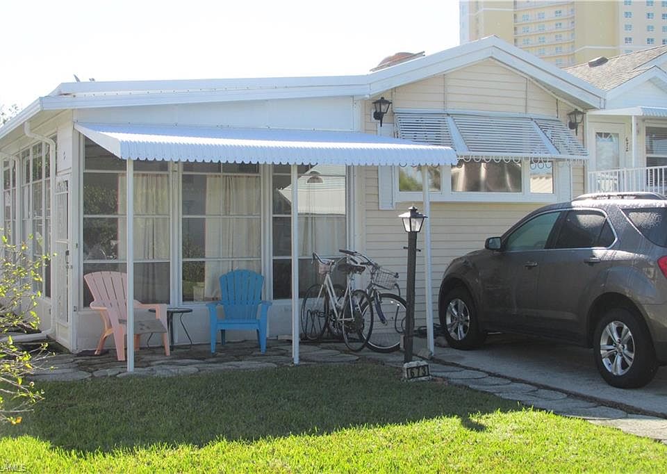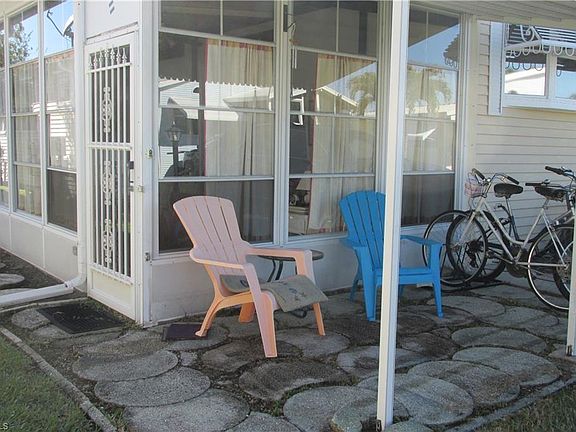 PET SECTION LISTING! This pleasant one bedroom one bath home is located in Palmetto Palms Rv Resort. The lanai is very wide, and the home has high ceilings. There is a utility room with a washer and dryer at the rear of the lanai. With a front kitchen and a large bedroom, this home is ready for its new owner! You own your land here, and are between Ft Myers Beach and Sanibel. This is a very active, fun filled adult park with pools, tennis, volleyball, and lots more. The community is entirely fenced and gated. Close to Sanibel, Fort Myers Beach, Bunche Beach, shopping and hospitals with lots of bike trails to get to those destinations.