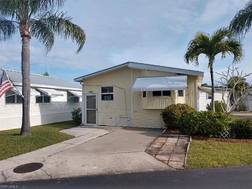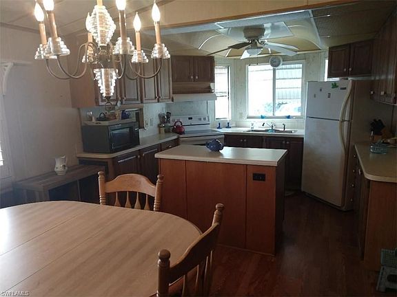 Welcome to Palmetto Palms! Finally a Pet friendly site is available! You will love this spacious home! Needs a little TLC, but well worth it. All on one level. Spacious kitchen with a dishwasher. Large living area, with pull out sleeper. Plantation shutters all around. Queen Bed in the master. Large laundry room with full size washer and dryer. Lot backs up to the fenced in pool area. Palmetto Palms is an over 55 community, offering pools, tennis, pickle ball, volleyball, Clubhouse with dinner dances and parties, library, card room and located so close to Sanibel Island. Bike to Bunche Beach and Restaurants. Come and be impressed with this community and low HOA .