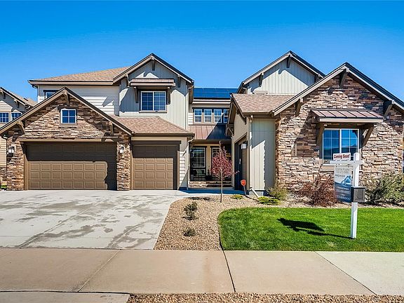 It's all about the WOW factor with this home! Stunning Flatiron mtn. views are the back-drop from nearly every room! The open/airy floorplan is an entertainer's dream with its 2-story vaulted great room, adjacent gourmet kitchen, formal dining, study, and main-floor guest bedroom & bath. Cooking in this dream kitchen is a breeze with its double ovens, gas cooktop w/ss hood, microwave, "smart" refrigerator, apron sink, granite/quartz double islands, walk-in pantry & mudroom! Upstairs features the master bedroom w/5-piece bath (double walk-in closets), a loft, and 3 additional bedrooms each with their own baths! The backyard is the epitome of "outdoor living" and features a massive patio (partially covered), professional cook-station (grill, 2-burners, sink), 3-spillway waterfall, hot tub, firepit, and multiple rock panting beds all with unprecedented, unobstructed views of open space & the Flatiron mountain range! The 4-car garage is also a car enthusiast's dream!