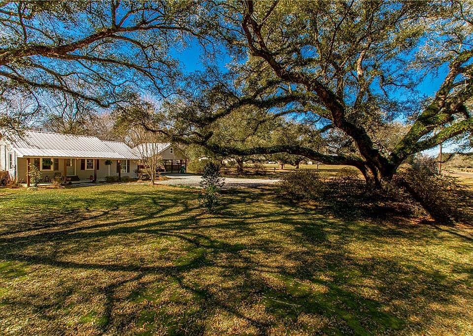 Welcome to Cozy Oaks Cottage! This rare, singularly unique, private country sanctuary is only minutes from Covington, Abita & Folsom. This 90-year-old Creole cottage home exudes French Country charm & style w/ quality finishes & modern renovations for easy living. A corner lot of just over an acre of land w/ large driveway & high quality, solid wood double carport w/ metal roof, great for weatherproof parking, crawfish boils & get togethers. Plenty of extra parking! Sit back on the front porch, while immersing yourself under the magic of mature gorgeous Live Oak trees. This historic home has been lovingly cared for & renovated w/ only (4) owners over its 90+ year history. Freshly painted in most rooms, the home has solid wood doors, window frames & crown molding. Main living areas & primary bedrm feature gorgeous wide-plank, super durable, easy-to-care-for stranded bamboo wood floors. This unique home also boasts the very rare treat of having exposed original, unpainted solid wood shiplap walls in the family rm, dining rm, & primary bedrm. A free-standing gas stove provides extra cozy warmth in the winter. Recently renovated, super convenient & efficient kitchen features granite countertops, subway tile backsplash, under-cabinet lighting, super-large pantry, Whirlpool gas stove, dishwasher & refrigerator. Tankless water heater for modern efficiency. Spacious primary bedrm w/ large walk-in closet w/ built-in shelving & storage. Primary en-suite w/ double vanity, cast iron tub w/ jets & a powerful wide shower head. Guest bedroom & side entrance feature beautiful & cozy beadboard wood ceilings. Guest bath includes ceramic tile, large stand-up shower w/ seating, laundry area for full capacity w/d & an extra ‘shop’ sink. A 20.5' x 25' covered patio w/ metal roof. The 12’ x 14' shed w/ attached lean-to for plenty of storage space. Top-notch schools & amenities are a stone’s throw away. This truly special & unique sanctuary is ready to move in, relax & enjoy. Flood Zone X