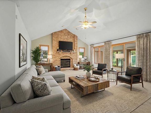First-floor laundryLarge pantryBright four-season sunroomSoaring vaulted ceilingsCustom-built all-brick homeAmple cabinetry