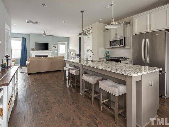 Come see this beautifully maintained home in Wendell Falls! Kitchen features granite ctops, Lg eat-in island, SS apps, tile backsplash &Lg pantry. Great-sized family rm w/gas fireplace &Lg windows. Master bed w/two closets--1 walk-in, bath w/tile floors, dual vanity, &glass/tile shower. Good-sized secondary beds w/Lg closets &shareable full bath. Cozy dining rm opens to kitchen. 1st Flr engineered hardwoods, 2nd Flr carpet. 2nd Flr laundry, 2-car parking pad, nicely landscaped, fenced-in back yard w/deck.