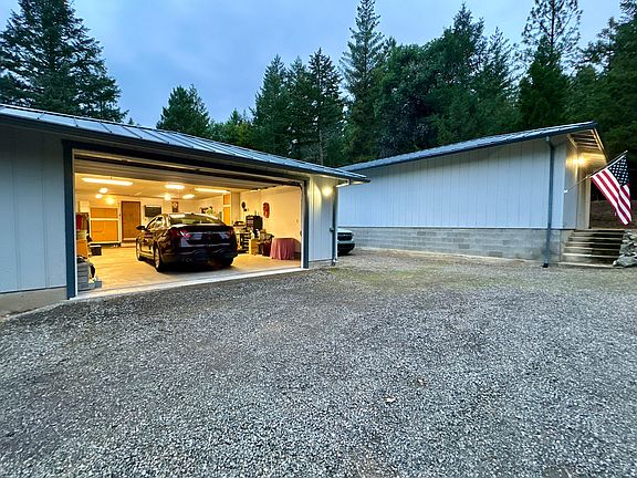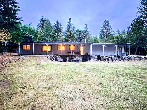 Come sit on the covered porch and enjoy the sunrise on this beautiful 9.99 acres. Well maintained ranch style home with a metal roof, new garage door on the extended garage and exterior paint. Sunroom addition. Enjoy having the land and privacy of Madrone, Red Cedar and Sugar Pine trees. Plenty of clearing and sun exposure around the house and shop. RVParking with water and elec. easy access and turn around. Large shop with multiple 220 Outlets, concrete floors and more! Gravity fed spring on the upper acreage and wildlife galore.