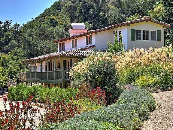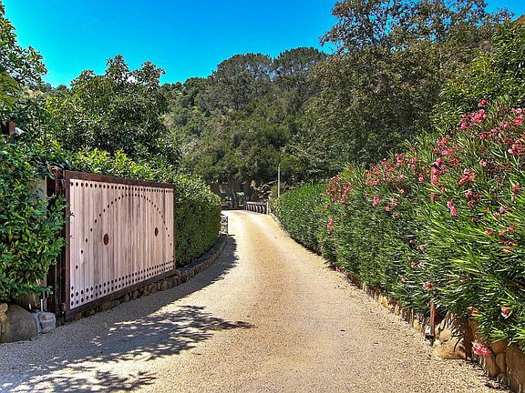 This very charming, gated, and private three bedroom, four bath Monterey Colonial home was originally built in the early 1900's and beautifully remodeled and exquisitely furnished. Features include large timber ceiling beams, inviting and spacious living & dining rooms, an upstairs cozy den, two fireplaces, and wood flooring. An office/reading room/nursery is attached to the main level master suite. The detail of the beautiful furnishings and art throughout the home create a comfortable high-end country feel. The setting is wonderfully private and surrounded by an avocado orchard, a seasonal running stream, and a family fruit grove. To add to the charm, peacocks can be seen on the grounds. Close proximity to Cate School and just a short ten minutes to restaurants, shopping, and beaches. Available to rent short or long term. No smoking. Tenants pay for utilities. Landlord pays for trash and yard maintenance.