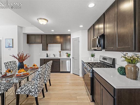 Welcome to the Delta Place Community where high end finishes abound! Featuring a contemporary, open floor plan, sleek finishes, a large master suite, and multiple walk-in closets, this townhouse is a must-see! Optional upgrades may include Central AC, high-end hand-troweled texture, Sparkle White Quartz, undermount sink in the kitchen, and a gas range. This unit features the professionally designed "Modern" color palette, extended Luxury Vinyl Plank throughout the main floor, and upgraded 42" cabinets. HOA covers exterior stucco, siding, paint, trash, landscaping, and street snow removal. This unit comes fully landscaped and move-in ready. Perfectly located near Academy Blvd, this community blends walkable parks and schools with easy access to everything Colorado Springs has to offer. 10 min to downtown and Peterson AFB, and only 15 min to Fort Carson. NO RESTRICTIONS ON SHORT TERM RENTALS! Additionally, the Delta Place HOA allows corporate, furnished, and short-term rentals. Don't miss the opportunity on a new home that is uniquely you! Please note that taxes are currently assessed as bare land for the entire complex. Taxes will increase after property is completed