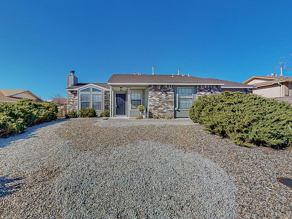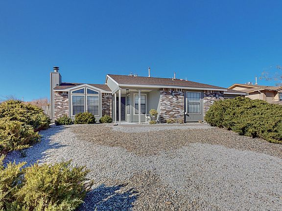 Do not miss out on this Rivers Edge II 3 bedroom/ 2 bath move in ready beauty!! Oh, the possibilities of memories are endless with this home! With a view of the Sandia Mountains from the family room stay comfy, cozy, with a wood burning fireplace in the winter. During spring and summertime relax under the covered patio with sunscreens in the perfect size backyard. NO HOA AND NO POLYBUTYLEN PIPING! New roof and water heater in 2019. Refrigerated Air, new furnace, and upgraded electric panel in 2021. Backyard access is a possibility if desired. Schedule your showing today!