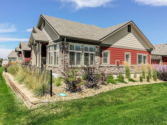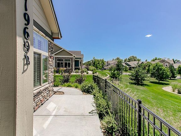 Rare ranch-style home listed as a condo, but appears more like a townhome. Beautifully appointed with builder upgrades & completed in 2017, this one-owner home is available for quick possession. It has 2 large bedrooms plus a study/office. Solid wood flooring except in bedrooms and baths, plantation shutters in every room except kitchen, granite counter tops in kitchen and baths: it is ready for you to move in. All appliances are included. The oversize garage has a built-in storage room so your garage doesn't look cluttered. Room enough for 2 cars and extra toys (and a long pickup easily fits on one side). No need for lawn equipment, though. The HOA takes care of the exterior, including the building and the roof. You'll love the truly maintenance-free living in a beautiful home and neighborhood. Enjoy the clubhouse and pool, too. TV Mount above fireplace is included. Close and easy access to Tower Road, E-470, Southlands Mall, and DIA. Price reduced. Look at this great bargain.