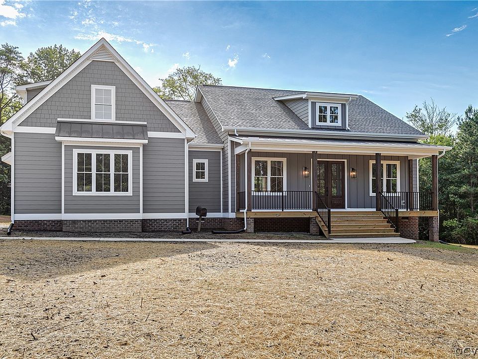 Welcome to Sheppard Grove! Beautiful move in ready new construction on a private road with over 3.5 acres of land. This modern farmhouse is full of custom features inside and out. Enjoy the 360 views atop of your huge yard with front and rear covered porches. Rear porch is ideal for entertaining with 2 ceiling fans that flows into the kitchen/living room and steps down to a huge 500+ sqft patio. 10 foot ceilings throughout the home with two sets of double door entryways, and all interior doors are 8 foot tall! Large chef's kitchen features two tone cabinetry and quartz counters, floating shelves, KITCHEN AID appliances, gas cooking, premium light fixtures, and a walk-in butler's pantry! Primary suite offers a spa like experience with a massive shower with freestanding tub encased in frameless glass. Shower also features marble flooring and premium porcelain with rainfall shower and handheld faucet. Enjoy plenty of space with the custom 9 foot double vanity with seating, 3 mirrors, and gold sconce lighting. Primary walk-in closet is nearly big enough to be its own bedroom! All 4 bedrooms feature walk-in closets. No HOA. Convenient to 64 and 250/broad street. 10-15 minutes to Short Pump, Hermitage Country Club, Wegman's, Greengate, Driveshack etc... 45 minutes to Charlottesville.