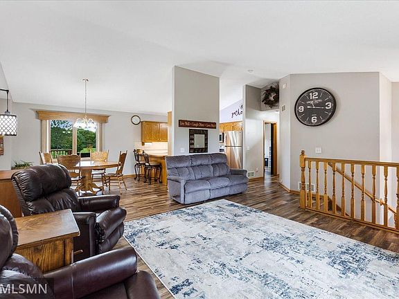 Welcome to this well-maintained home in Big Lake. This property offers, 2.5 acres, 4 good-sized bedrooms, 2 bathrooms and a large 3 car garage. The spacious open concept living area is adorned with large windows, allowing natural light to flood in. Vaulted ceilings add great space to the living room and kitchen. The lower-level features 2 large bedrooms. One with a large walk-in closet. The family room has a beautiful fireplace to warm up next to on those chilly fall nights. Step outside onto your recently redone back deck, where you can sip your morning coffee while watching the sunrise or entertain guests as the sun sets over the amazing backyard. Offering 2 apple, 2 pear and 1 plum tree. Fenced in garden and raised garden bed. 16x12 storage shed with electric and an adorable 17x12 playhouse. Shingles and driveway redone in 2022. Septic 2021. Central Air & Furnace new in 2018.
