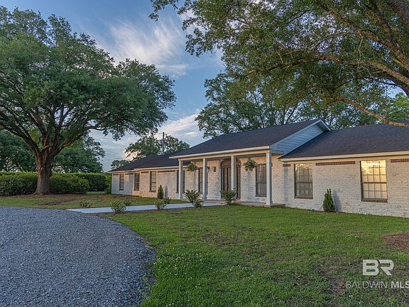 REDUCED TO SELL! 4-bedroom, 3-bathroom beautifully appointed home on a stunning 3.25-acre parcel in Fairhope—outside the Fairhope Single Tax District and NO HOA! Surrounded by mature oak and pecan trees, azaleas, blueberry bushes, and a peaceful pine forest, this property is a nature lover’s dream. Enjoy the view year-round from the sunroom with its wraparound picture windows. A wide circular driveway welcomes you to the home and sets the tone for what’s inside. The open-concept layout connects the spacious living room, dining area, and kitchen—perfect for everyday living and entertaining. Craftsman-style wainscoting, shiplap walls, a cozy fireplace, and built-in shelving add warmth and character throughout. The farmhouse-style kitchen features ZLINE appliances, a gas stove with pot filler, waterfall-edge breakfast bar, and ample cabinetry. The walk-in pantry includes an extra sink, butcher block countertops, and built-in shelving. Titan LVP flooring runs throughout the home, offering the look of hardwood with added durability against water and scratches. This 2,754 sq ft home includes 4 spacious bedrooms and 3 full bathrooms, including a private in-law suite (guest-suite/ secondary master). The primary suite features a walk-in closet with built-ins, access to a back terrace perfect for relaxing or converting into a screened porch, and a spa-like bath with a walk-in shower, soaking tub, dual vanities with makeup station, and private toilet room. Most of the property is fenced. Bonus: Quail Creek Golf Course is just a 2-minute golf cart ride away and open to the public! Don’t miss this rare opportunity to enjoy comfort, space, and natural beauty all in one place. All dimensions are approximate. Buyer to verify all information to their satisfaction before closing. Buyer to verify all information during due diligence.