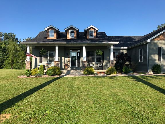 Beautiful Craftsman home on 10 acres 5 miles outside of town. Front 5 acres is a nice yard and back 5 acres wooded with pond. 9 foot ceilings throughout and 10 foot ceilings in foyer and living room. Open floor plan with space to welcome guest. 3 bedrooms and 2 full bathrooms on main level with 1/2 bath. Large bedroom with walk-in closet, bathroom and foyer area finished downstairs with door to unfinished part. Beautiful stone fireplace floor to ceiling with built in tv cabinet in living room. A separate laundry room with shiplap walls.