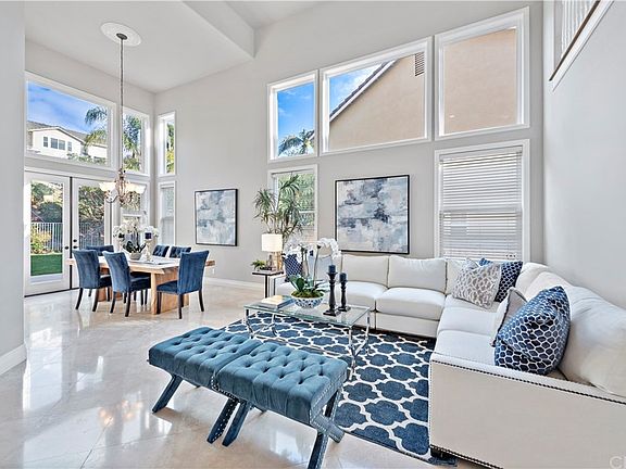 Gorgeous Entertainer's Home! Nestled w/in the highly sought-after community of Portola Hills, this 3492 sqft home sits on a 10,000+ sqft lot & features 4 spacious bedrooms + loft, 4 baths & 3 car garage. Double door entry into the open-concept floorplan w/ vaulted ceilings, travertine flooring, & an abundance of natural light. Crown moldings and recessed lighting throughout entire home! Garage has been upgraded with epoxy flooring, new cupboards, work bench, tv, & Tesla charger! French doors create an indoor/outdoor feel by connecting the dining area and spacious living room to the private backyard. Over-sized family room featuring a cozy stone fireplace, large windows to showcase the backyard, & a perfect location next to the impressive kitchen. Prepare delicious meals in the gourmet kitchen featuring built in range, large center island, double ovens, granite countertops, travertine backsplash, & sunny breakfast nook. Unwind in the upstairs master retreat with backyard views, soaking tub, dual vanities & walk-in closet. Secondary ensuite bedroom, bonus area w/ built-in entertainment center, fourth bath, & 2 other spacious bdrms complete the top floor accommodations. Entertainer's dream backyard w/ lush landscaping, built-in barbecue and plenty of room for a pool. Award winning schools, shops, restaurants & entertainment nearby! Enjoy all that the community of Portola Hills has to offer including a clubhouse, pool + splash pad, parks, playgrounds, hiking trails and much more!