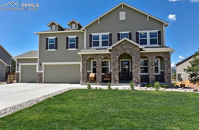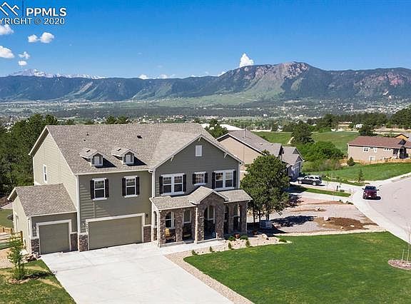 Stunning 7 Bedroom home with Amazing Pikes Peak Views centrally located on over a half acre lot in Monument with No HOA fees! 3 Car Garage New 2017 Year Built Home with 6684 Sq Ft of living space, with multi-purpose flex space,for home schooling,meditation studio,yoga room,wellness room,multi-generational living. Working or Learning from home? No problem, there are 7 bedrooms PLUS a main level office. This home has ample places for dedicated Work Space/Creative Space/Privacy for Video Conferencing with an amazing multi-tiered deck with hot tub. VIEWS VIEWS VIEWS!This home sits on a premium corner .56 acre culdesac lot with walkout basement and PIKES PEAK VIEWS.The front of the home is graced with grass sod and Georgetown cobblestone covered front entry and the backyard enjoys maintenance free turf,decorative rocks,stone pavers,2 large decks,full rear fencing with an over-sized dog run. Each level has its own family room,living room or loft! Thousands in design center upgrades(see the full list in the home). 3 Car Garage is insulated and drywall finished.Large enough to fit a truck and have a workshop too.Full wall Proslat panels for all your garage shelves or tools.Hanging ceiling storage rafters provide great extra storage space too.The entry and main level have upgraded Bella Cera Venosa Wood Laminate Floors throughout the entire main level,except the bonus family room. Gourmet Kitchen has Bianco Frost Granite Counter Tops,Rittenhouse square dessert grey backsplash,Parker Maple Espresso Cabinets,staggered cabinets from 36 to 42 inch,cabinets over the refrigerator,lazy susan corner cabinet,HUGE walk in pantry,Stainless Steel appliances and Camerist Brushed Nickle faucets. No other home in enjoy such versatile square footage and flex adaptable living spaces with AMAZING Pikes Peak views.