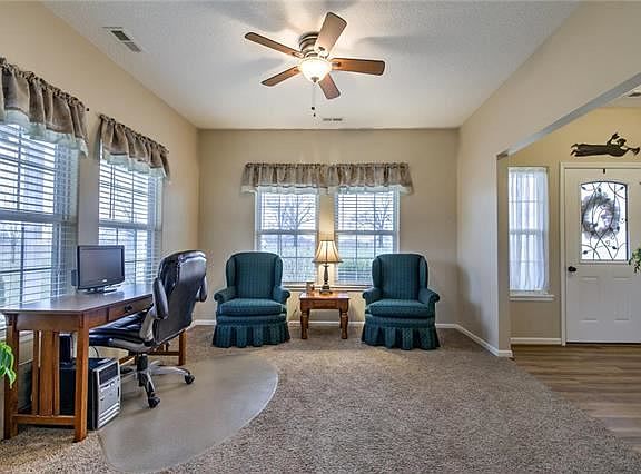 - INTERIOR FEATURES: Partial Carpeting, Kitchen Island, Custom Cabinets