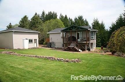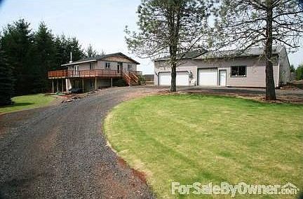 Fully remodeled home. Custom cabinets with pull outs. Granite tile kitchen counter tops. Tile and oak flooring upstairs. Gas fire place in great room, office, kitchen, and 1/2 bath up stairs. All new carpet down stairs. 3 bedrooms, 1 full bath, and family room with pellet stove down stairs. Trane high efficiency heat pump with gas furnace installed in the last 2 years. Very good well water. Detached two car garage with storage rooms above attached to a 36x36 heated shop with 1/2 bath. 2 out buildings. All on 5 acres mostly flat and some timber. Silver Falls State Park borders 2 sides of the property. All offers considered, willing to work with a buyers agent.Additional property info: http://www.forsalebyowner.com/listing/3-bed-Single-Family-home-for-sale-by-owner-19694-DeSantis-Ln-SE-97381/22663096?provider_id=28079