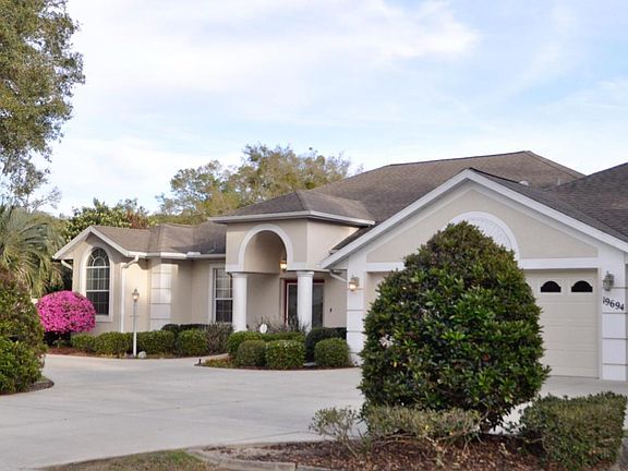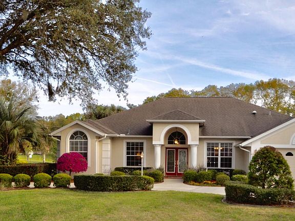 Come home to Serenity in Fairway Estates Village of Rainbow Springs, Dunnellon. Exquisitely landscaped half-acre corner lot with Circular Drive,Split Floor Plan, 3/2/3 Pool Home. Ornate Front French Doors, Polished Travertine Floor in Foyer, Vaulted 14' Ceiling in Great Room. Large Den, Formal Dining Room, Spacious Living Room w/Built-in Entertainment Center, BRAZILIAN HARDWOOD FLOORS. Huge Screened-Lanai/Pool area w/Partial Outdoor Kitchen. Kitchen: Tile Floors, Breakfast Nook W/Triple Angled Windows,Breakfast Bar, 42''H Cabinets, Corian Counters, Deep/Prep Sinks, Under-cab Lighting, Island w/Power. Master Suite: French Doors, 2 WI Closets, Jacuzzi Tub, Marble Counters, Walk-in Glass Shower, Twin 42''H Vanities. Guest Bdrms with a full guest bath that accesses the Pool/Lanai.