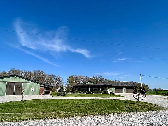 This 2 bed 2 bath custom built home sits on 1.66 acres. Large wrap around screened in front porch with beautiful sunset views. Living room features a wood burning stove for cold nights, vaulted ceilings and a open concept. Kitchen has stainless steel appliances and a large walk in pantry. Hardwood floors throughout the main living area and into master bedroom. Master bedroom has a spacious walk in closet and bath with beautiful tile walk in shower. Partial basement with partial crawl space. Laundry is currently in basement but main level hookup is also available. Oversized 2 car attached garage features RV hookup and hot and cold water hose bibs. This property also features a 42x40 pole building with 12x40 loft for storage and a separate workshop that is heated and cooled. You will enjoy the Blackberry, Strawberry, and Raspberry patches as well as a large garden area. Call or text for a showing today! 618-444-6355 or 618-978-9808 CANNOT CLOSE ON PROPERTY UNTIL JUNE 22.