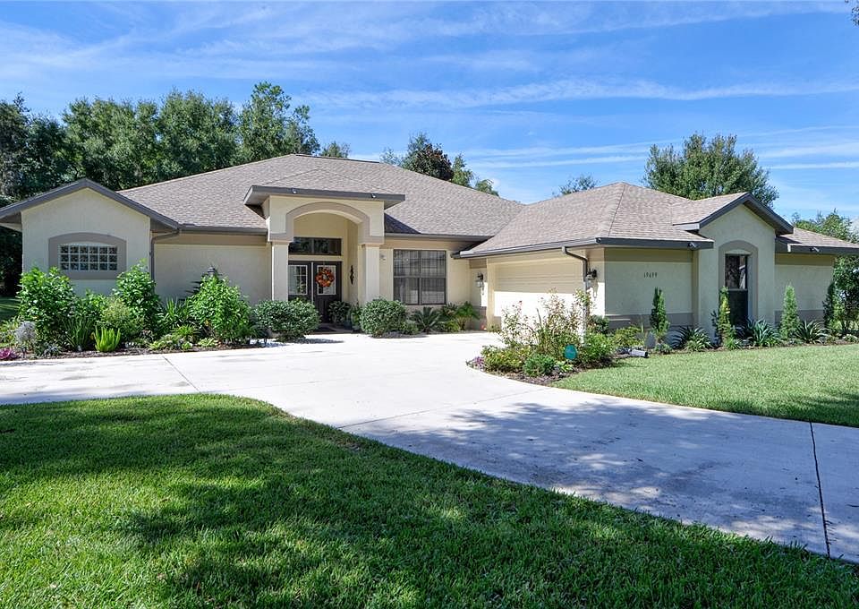 Fabulous Edinberg model in Grand Park North with a screened, solar heated pool! This home boasts 2818 living area and 10 feet ceilings. As you enter the foyer which has a double tray ceiling, you will notice the great view of the pool through french doors in the living room. There is a formal dining room. The kitchen has wood cabinets, new appliances in 2020, corian counters, and an island. The breakfast nook has a seamless window that overlooks the lanai and pool. The kitchen is open to the family room that has laminate flooring. The family room has french doors that open to the pool. There is also a bathroom with a door to the pool. Wait until you see the master bedroom it is 40 feet by 15 feet and has his and her closets and french doors that open to the pool. The master bath has separate toilet room, linen closet and walk in shower with NO step down. The guest bedrooms are separated by the guest bath. The laundry room has nice wood cabinets and a storage closet. This location can not be beat -- NO rear neighbors and located on a cul-de-sac To the rear is wooded area and beyond that is the Rainbow River State Park. This community has access to a private residents park on the Rainbow River, the clubhouse, tennis courts and pool. The air conditioner replaced 2/21 The area on the right side of the cul-de-sac will not be built on it is used as an area to celebrate holiday events.