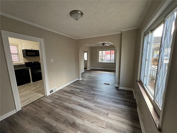 This solid brick home in Ambridge's historic Old Economy District offers plenty of space and character! A welcoming front porch leads into the main level featuring tile and high-performance flooring throughout. The spacious living room with a ceiling fan flows into a large dining room, perfect for gatherings. The charming gaily kitchen includes granite countertops, black appliances, and access to a level, fenced-in backyard - great for entertaining! The first floor bedroom off of the dining room provides convenience and flexibility. Upstairs, you'll find three nicely sized bedrooms and a full bath. The basement adds extra storage space and includes a half bath. Located near Route 65, this home offers easy access to shopping and dining in Robinson and Cranberry. Don't miss out on this fantastic opportunity in a great location!