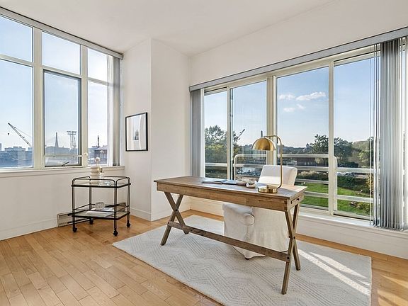 OPEN HOUSE CANCELED. ACCEPTED OFFER. If you want views, look no further! This lovely corner unit with gorgeous city and harbor views is equipped with massive windows and is flooded with natural light throughout the day. The spacious floor plan with an open living room and adjacent dining area is perfect for those who like to entertain. Enjoy your morning coffee in the sitting area that overlooks the park through glass sliding doors. The primary bedroom with en-suite bath room is huge and can accommodate a king sized bed with extra room for chairs to enjoy the view. Take advantage of the A+ location with easy access into Downtown Boston via the water shuttle that docks right outside of your window. Just steps away from amazing restaurants and only a short walk to the North End. Flagship Wharf is a 24 hour concierge building with garage parking, full-sized fitness center with a sauna and top notch service. Life couldn't get any easier!