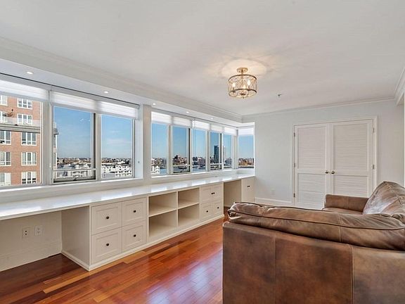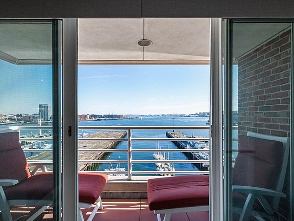 Stunning, sophisticated luxury condo located at The Flagship Wharf, offering spectacular views of Boston Harbor and the City Skyline. This magnificent corner unit provides amazing water views from every window, a superb open living room/dining room area, custom designed kitchen, high end appliances, breakfast bar leading to a private deck. Luxurious master bedroom with an ensuite bathroom, 2 additional bedrooms, walk-in closet, hardwood floor throughout, beautiful lighting, amble storage, laundry room, 2 parking spaces, pet friendly. Flagship Wharf is professionally managed, and offers 24 hr. concierge, gym, common library, extra storage space. Easy access to major highway, logan airport, water shuttle.