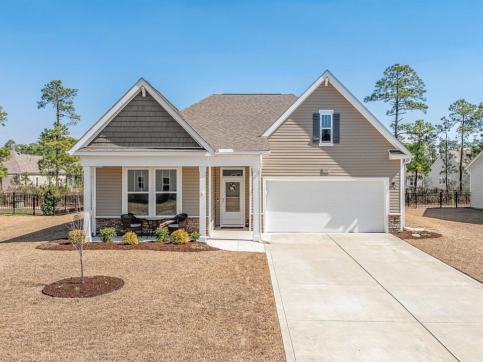 Centrally located for easy access to everything along the Grand Strand, the Astoria Park Community is a must-visit. Positioned between International Drive and Highway 22 off Highway 90 in Conway, SC, this neighborhood offers both convenience and charm. This beautifully maintained 3-bedroom, 2-bathroom home is a standout. From the moment you arrive, the spacious driveway, great curb appeal, and welcoming front porch make a great first impression.  Step inside to a wide, inviting foyer with high ceilings and stunning LVP flooring. Just down the hall, two spacious bedrooms offer great natural light and share a full bathroom with tile flooring and a tub/shower combo. A mudroom to the right provides access to the two-car garage and a full-sized laundry room for added convenience. As you continue, the home opens into a bright and open main living area, featuring a spacious family room and a chef’s dream kitchen with ample counter space and cabinetry, stainless steel appliances, a gas range, a large walk-in pantry, and beautiful stone countertops. Just off the kitchen, the dining area is filled with natural light, making it a great space for gatherings.  The primary suite, located in the back corner of the home, offers a spacious retreat with plenty of room to relax. The private en-suite bathroom features double sinks, a walk-in shower, a large linen closet, a private water closet, and an oversized walk-in closet. Outside, the screened-in back porch is perfect for enjoying the fresh air, and the concrete patio provides a great spot for grilling or soaking up the sunshine. The beautifully landscaped backyard is designed for privacy and can be fenced in if desired.  This home has been meticulously maintained and is truly move-in ready. Don’t miss your chance to see it in person—schedule your tour today!