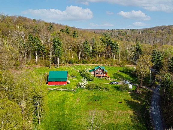 Vermont living at it's Best! Apple, peach, and pear trees, blueberries for your pancakes steps away from your door. Beautiful mountain views from anywhere on the property. Enter under the covered porch to the spacious kitchen with slate floors, custom wood countertops and large kitchen island. Just beyond lay wide plank wood floors and dining area with sliding doors to the open porch. The 1st floor also has a full bath, family room, and back bedroom or office/den if you prefer. Take the custom wooden staircase to the 2nd fl. to a large landing which could be transformed to closet space or kept open for play, reading, or relaxing. Two nice sized bedrooms, full bath, and walk-in closet space are also on the 2nd level. The basement has concrete floors and plenty of open space for extra storage or use as a rec room. On-demand water heater, furnace, and oil tank all new in the last 2yrs. The Barn! Large barn with its own electric panel (220 amps) featuring 4 stalls and room for more, a hay loft (ladder access) and plenty of work space for all your projects. There's also a horse riding rink! There is so much this house and property offer and so many possibilities, if you're able to stop staring at the views. You don't want to miss this one!