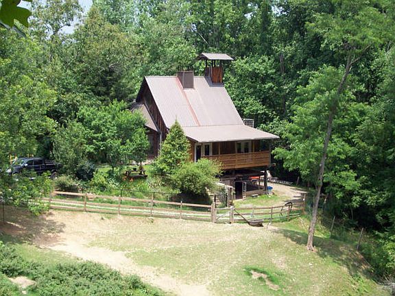 Unique Chalet Style home in private mountain setting. Property includes two barns, riding ring. Home is rugged construction, rustic with huge beams and fireplace with wood stove insert. Lots of character. Big windows in living room look out over nature, woods and fields. Adjacent 26.8 acre tract is also available for $112,000 and adjoins Cherokee National Forest. Neighborhood Description Located in a rural mountain community, sparsely populated and popular with outdoor recreational enthusiasts. There are miles of country roads and trails to hike or ride. Totally unrestricted property allows the owner freedom to do as they please.