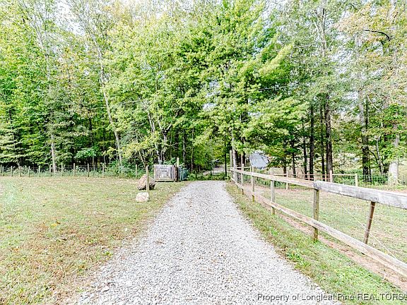 This Southern Chatham County property offers a mountain-like retreat without the 3-hour drive. Just minutes from Sanford, Apex, & Raleigh. This beautiful 10.91-acre property offers ample space for horses, gardening, or other outdoor pursuits. A peaceful creek flows across a portion of the land, adding natural charm, while the front entry features a fenced pasture & stable, w/ dedicated 2nd well & is ready for immediate use. The property also includes a covered carport, a 16x20 storage building, & a spacious 16x40 four-bay shelter for tractors or recreational vehicles. The charming 3-bedroom, 2-bath home has been updated with new vinyl windows, a newer heat pump, & a remodeled kitchen featuring granite countertops. Two bedrooms are on the main level, with a spiral staircase leading to a loft/bonus room or 3rd bedroom, complete with a balcony that offers stunning views of the property—perfect for enjoying your morning coffee. Don’t miss the chance to make this versatile estate your own!