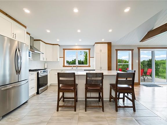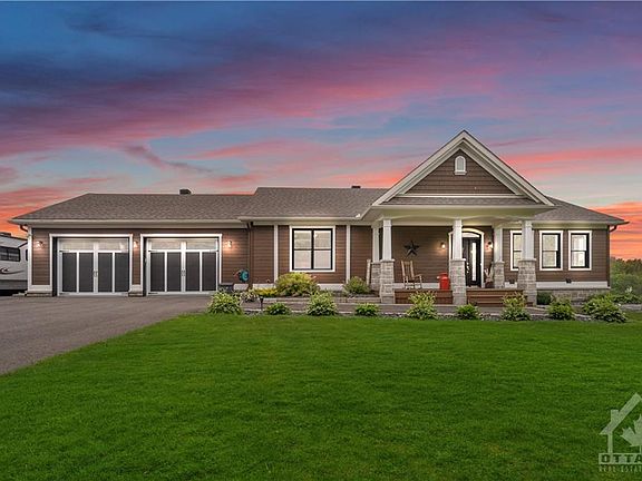 Step into a realm of elegance & tranquility at Lac Georges in picturesque Prescott Russell east of Ottawa. This stunning hobby-farm combines luxury, comfort, & the beauty of nature. Large 4 BR bungalow(2019-built) w/lower lvl walk-out. Approx. 3,000sqft. 2 car garage w/staircase to lower lvl. Bright, open concept main lvl w/ gas FP, wide plank flooring, vaulted ceiling w/ wooden beams. Chef's kitchen w/quartz counter tops, gas stove, walk-in pantry & centre island. DR leads to balcony offering views of fields & treetops. Heated, inground salt water pool w/glass enclosure. Generac generator offering peace of mind. 54 acres. Horse stable(2008-built), fenced yard, the stable's 2nd floor offers living quarters w/ 2 full bedrooms, washroom & living area. Enjoy activities on cleared trails incl. hiking, snowshoeing, horseback riding, ATV. Lake w/river access offers fishing, boating & jet skiing. High quality chicken coop can provide fresh eggs from your own flock. Don't miss the video!