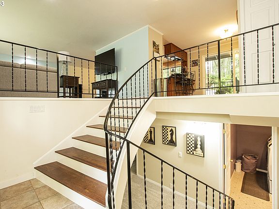 Beautiful four bedroom, three bathroom home that combines a great floor plan and formal/informal indoor spaces with the natural beauty of the property. This inviting residence offers an excellent separation of space, with two bedrooms upstairs and two downstairs, and a downstairs family room. Step into the breathtaking backyard and gaze up at the majestic canopy of mature oaks, providing dappled shade and a sense of serenity. The inviting landscaping features an array of blooming shrubs, and new steps that lead to the back gate. Enjoy privacy and quiet, as you relax or entertain on the new Trex deck. Inside, you'll find a home with new updates, many large windows for light, and a spacious primary suite. New engineered hardwood floors in the living room extend down the staircase. Take note of the stunning new fir front door with sidelights, that stream light into the interior. The living room with its gas fireplace and new mantel welcomes you home. Views from the window seat make it a favorite spot for family or pets to survey the neighborhood. Fresh paint throughout most of the residence, and new carpet in upstairs bedrooms.Large primary suite includes a large walk-in closet area and bathroom. The bedroom's divided space could be suitable for an office, nursery, or TV space. Located in a desirable neighborhood with private walking paths in the woods along a brook. Convenient access to the South Willamette shopping areas and schools. Don't miss this opportunity to make 197 Brae Burn Drive your home. Seller related to listing agent.