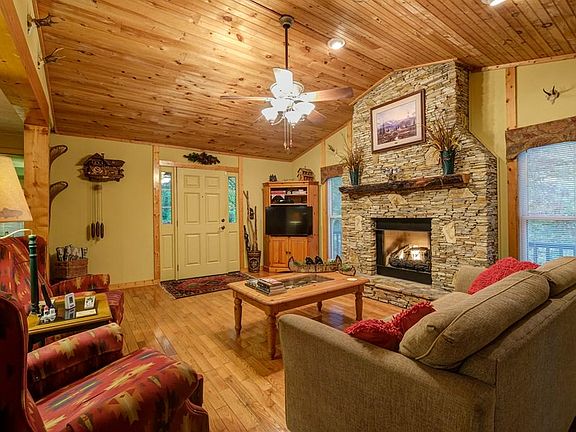 This sweet home is nestled in the woods of the Grape Creek area just waiting for you! Your Great Room has a vaulted wood ceiling and flooring, a stacked stone fireplace makes for warmth on the chilly mountain evenings. French door access to your carpeted screened porch with an open deck beyond. Your eat-in kitchen has plenty of cabinets & gas cook top. A spacious laundry room with double sink, plenty of storage and back door entry. Your Master Ensuite has a shower and double vanities. Guest bath and bed, plus a Bonus Room! Outside is your double oversized garage, paved driveway, a deck leading to a patio area with a pergola, fire pit and storage shed. Home sweet home never looked so good!