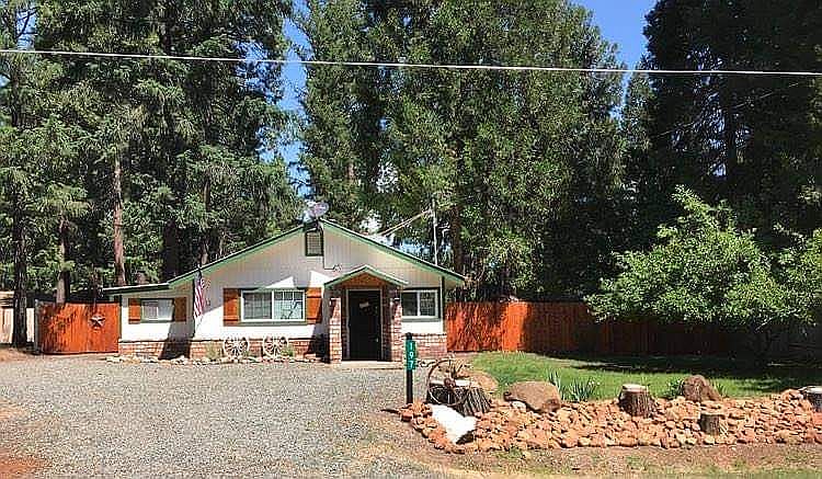 Are you looking for a cabin near Trinity Lake? Look no further, this adorable single-story home offers 2 bedrooms, 1 bath, 800 sf of cozy living space situated on 0.26 acres just minutes from the Trinity Center boat ramp. Rustic knotty pine walls in the living room featuring a woodstove for peaceful living at the base of the Alps. Kitchen is well stocked with built-in microwave and full size refrigerator included. Dining room is situated under a large window to let the outside in. The main bedroom also features knotty pine walls for that cabin feel. Guest bedroom was recently updated with warm colors and decor. This home is being sold as-is and all furnishings are included with the sale making moving in real simple! Outside you will find a large metal carport for your RV or boat parking & there is also a large shed for storing your lake toys. Don't wait too long, this gem won't last long!